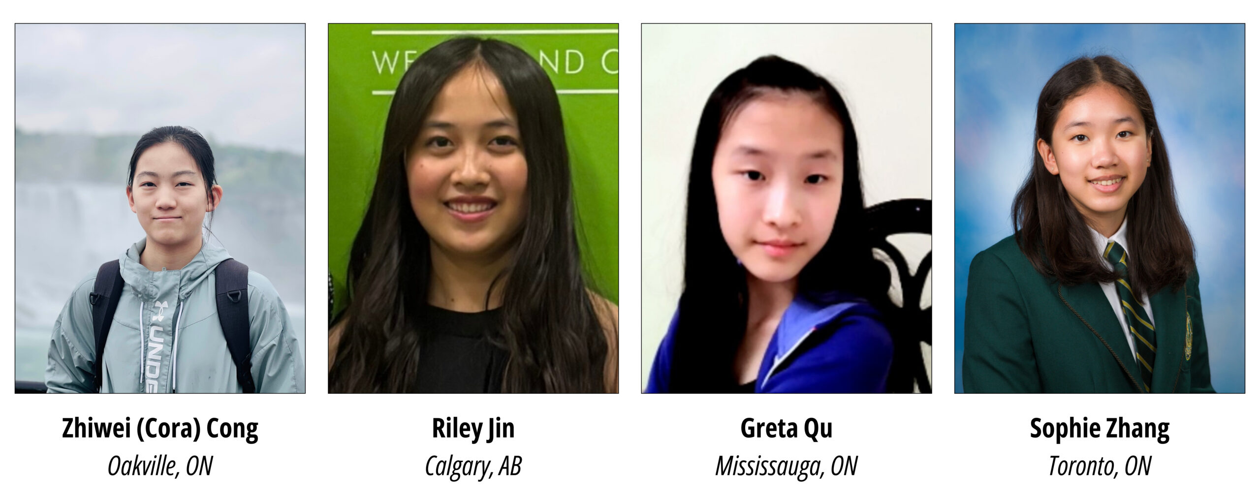 • Zhiwei (Cora) Cong: Grade 12, Appleby College, Oakville, ON;